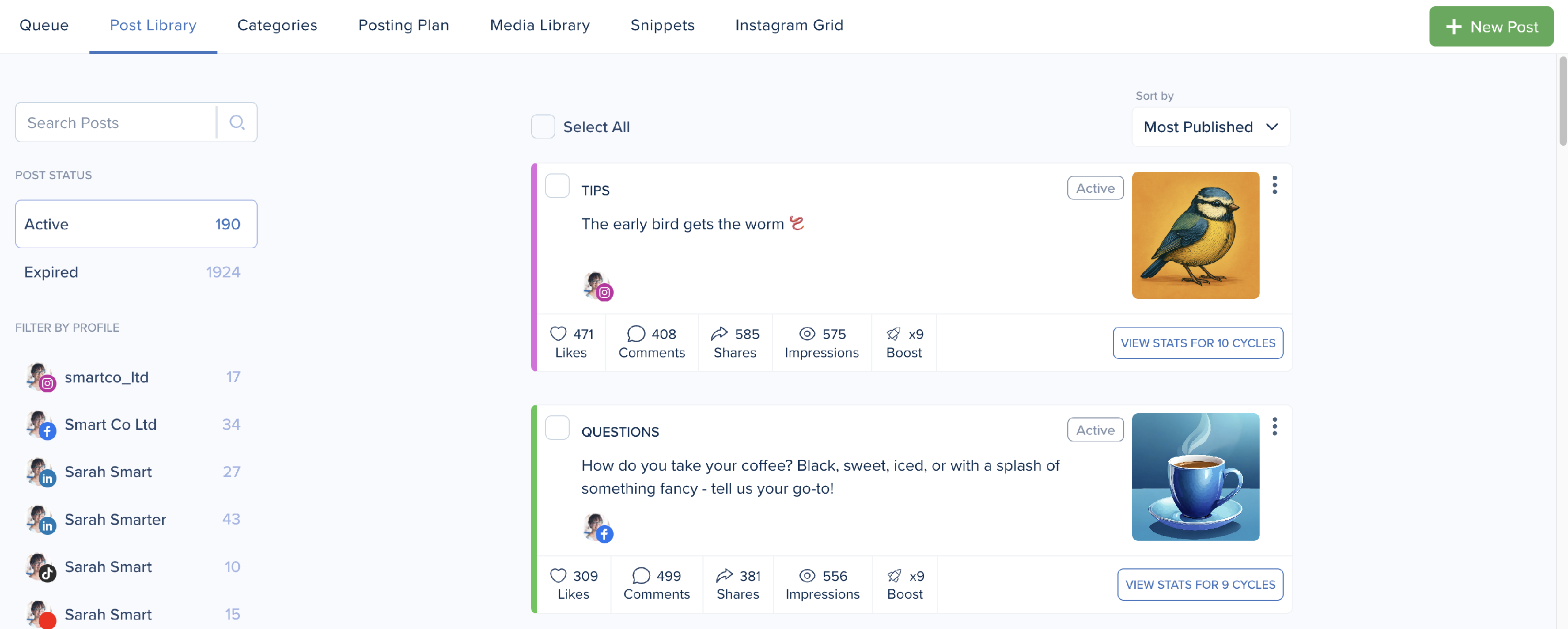 👉 Explore how publishing is better than ever with complete per-profile cross-posting customization, smarter previews, a brand-new Post Library, and more. |