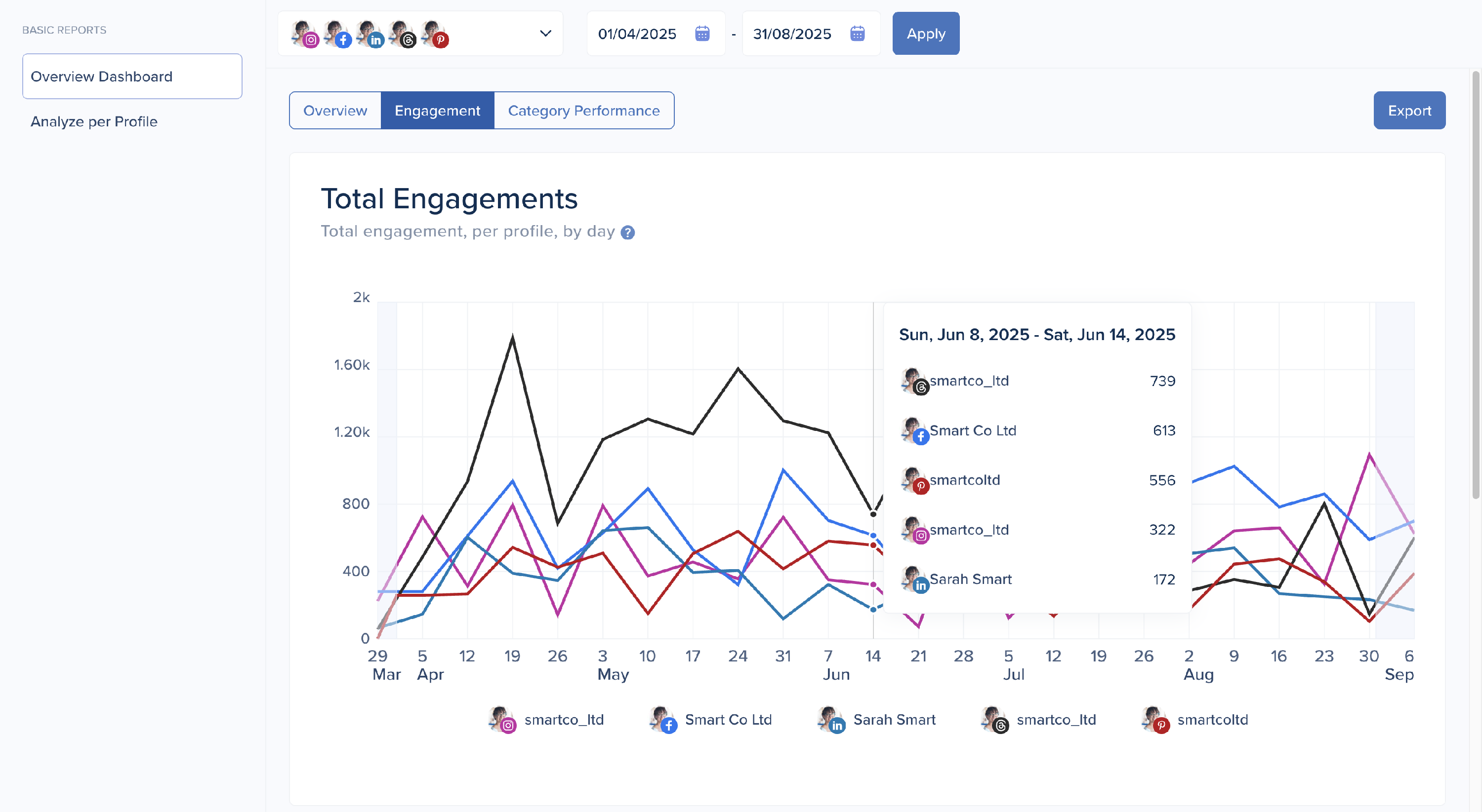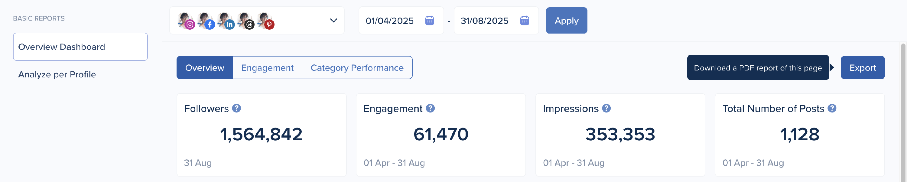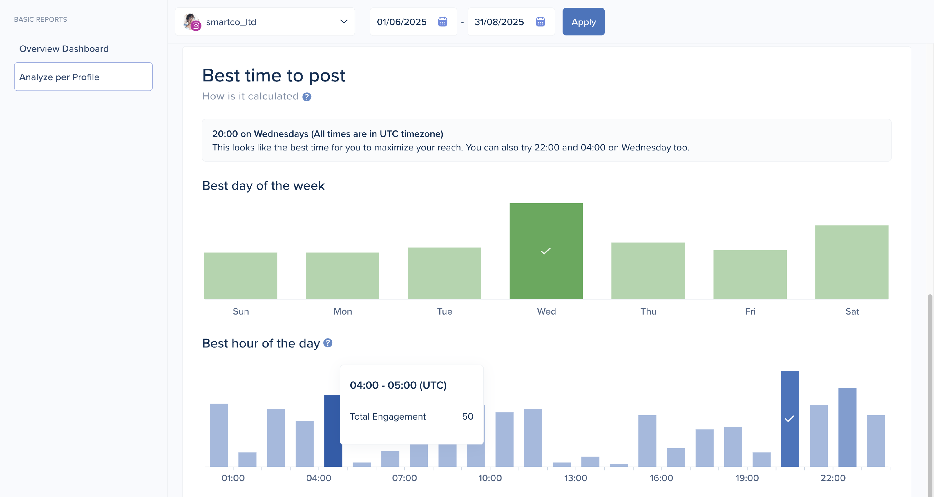 👉 Discover clearer insights with profile-level dashboards, smarter engagement metrics, best time to post recommendations, and polished PDF exports. |