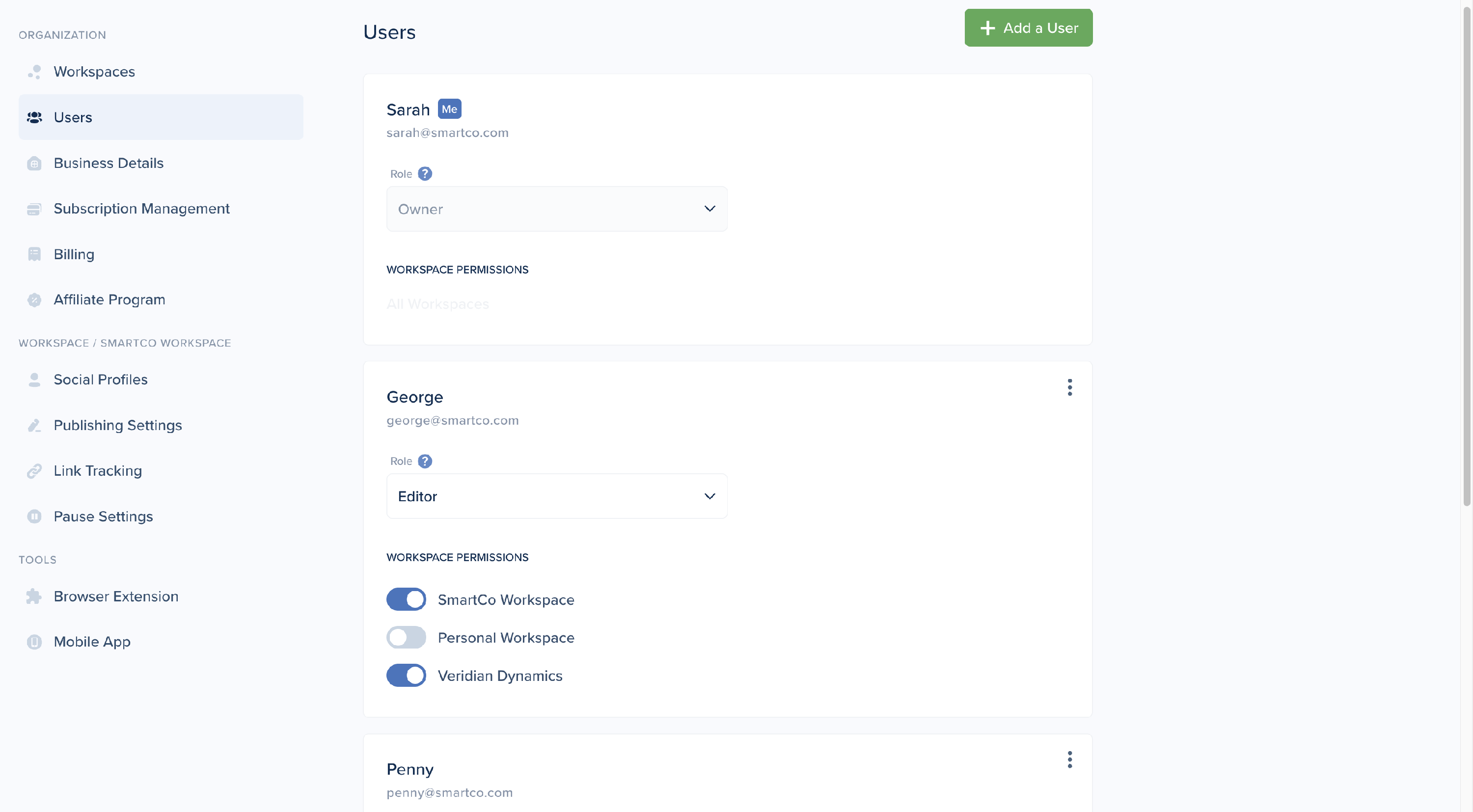SmarterQueue now makes it easy to work with others, whether that means a VA helping you schedule posts or an entire team managing multiple brands.