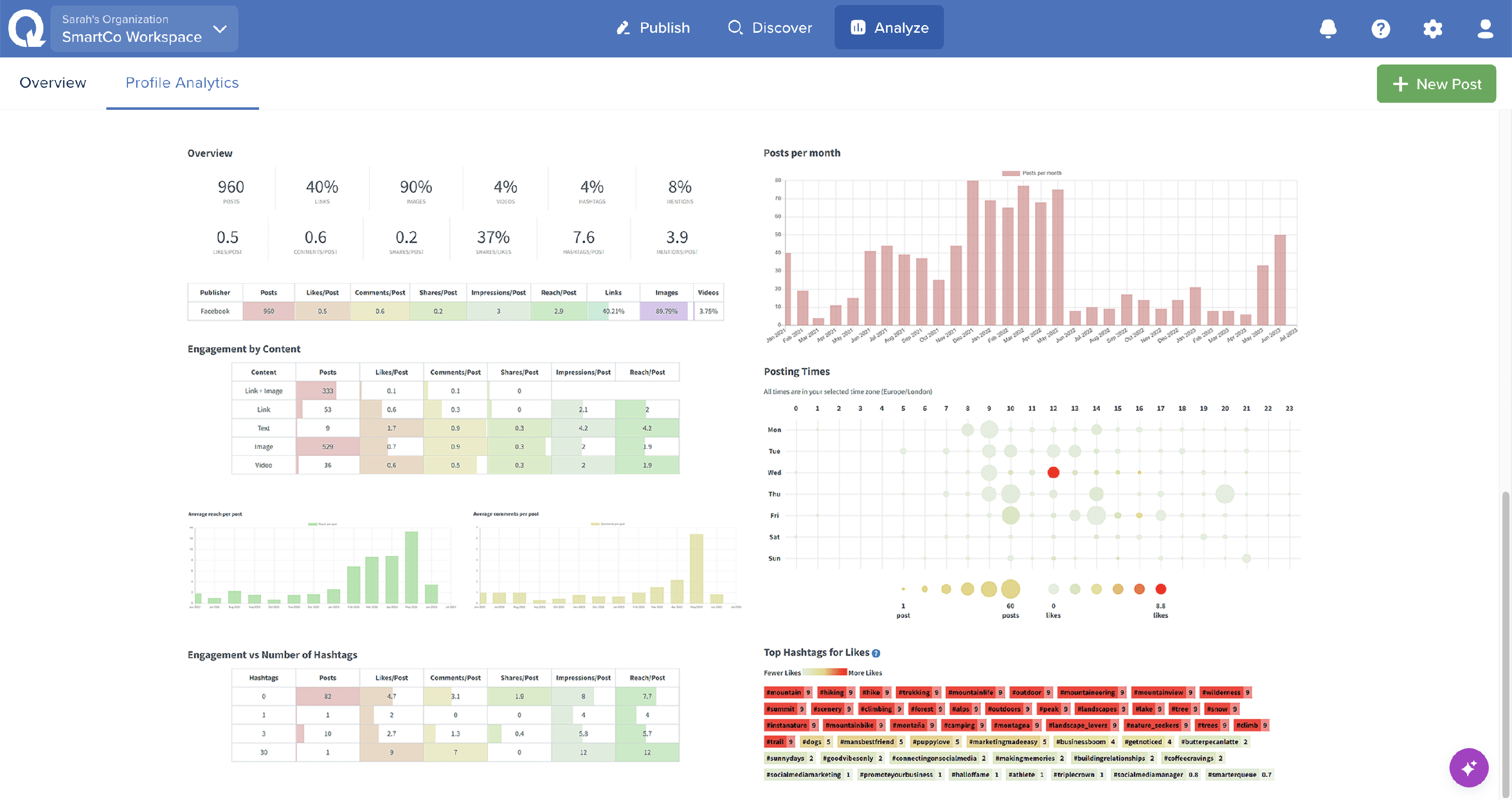 Overview focuses specifically on results from content published via SmarterQueue, making it the best place to understand what’s resonating from your SmarterQueue publishing strategy.