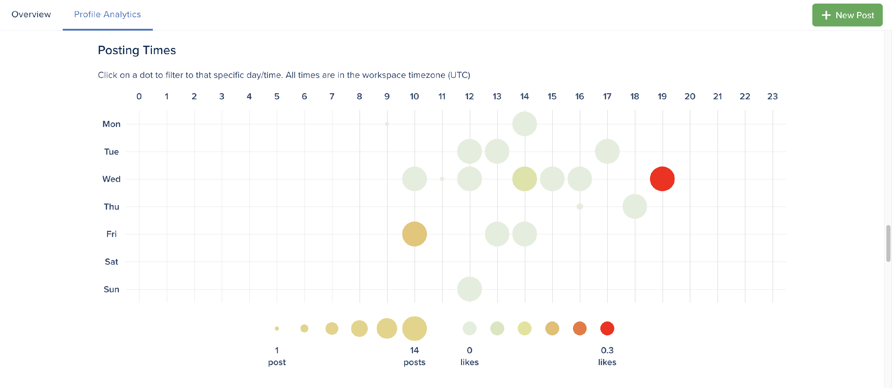 In Overview, Best Times To Post is available when viewing a single profile, and is based on your SmarterQueue-published content for that profile.