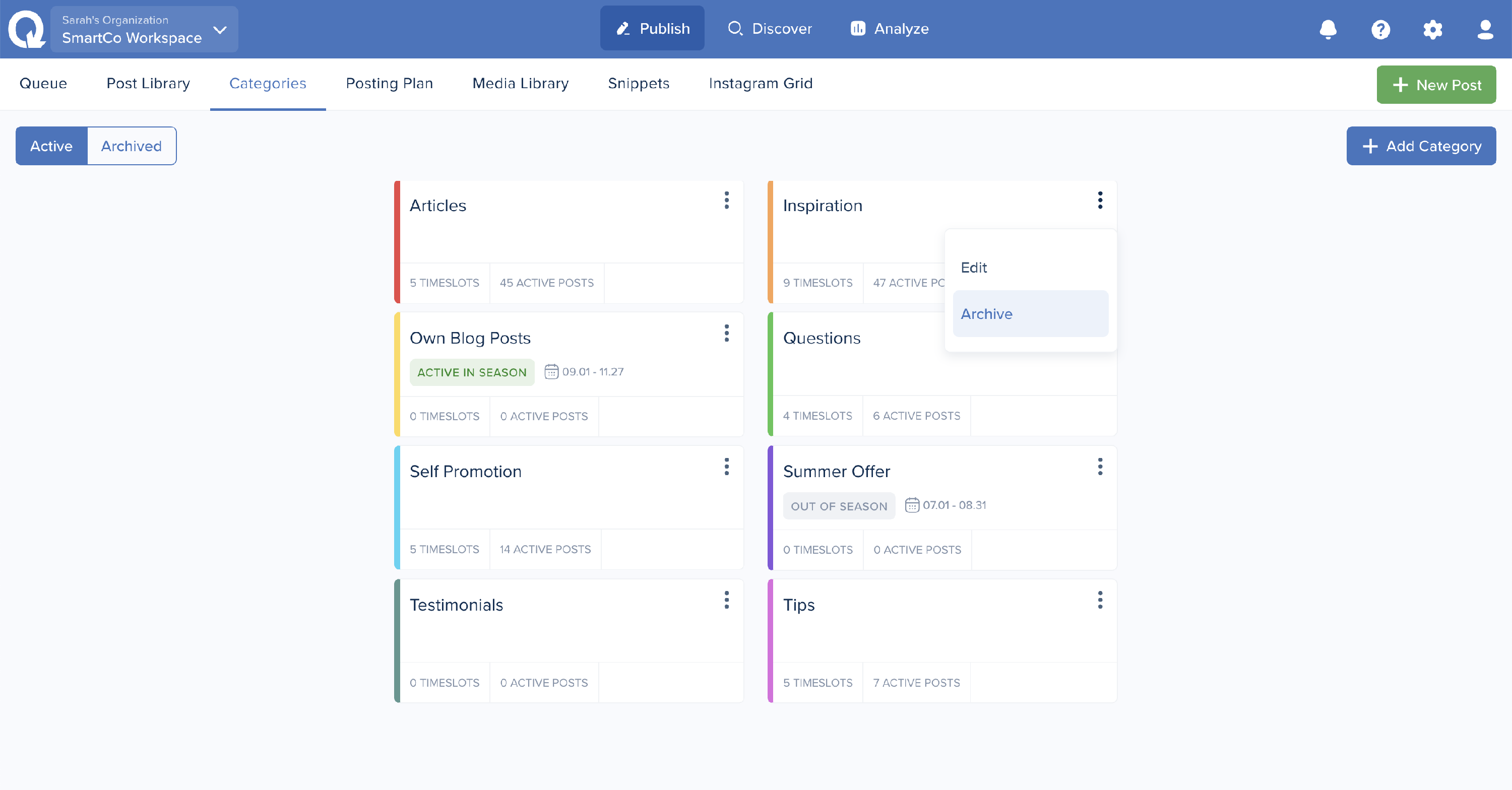 Categories still keep your publishing organized by theme, campaign, or posting style - now with more flexibility to adapt to your publishing flow.