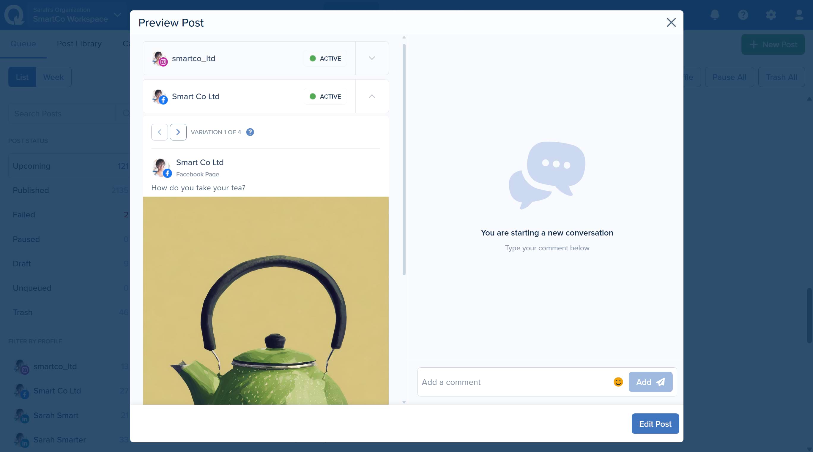 In the Queue, managing posts across multiple profiles or Variations is now faster and more intuitive, thanks to major upgrades in how previews and editing work.