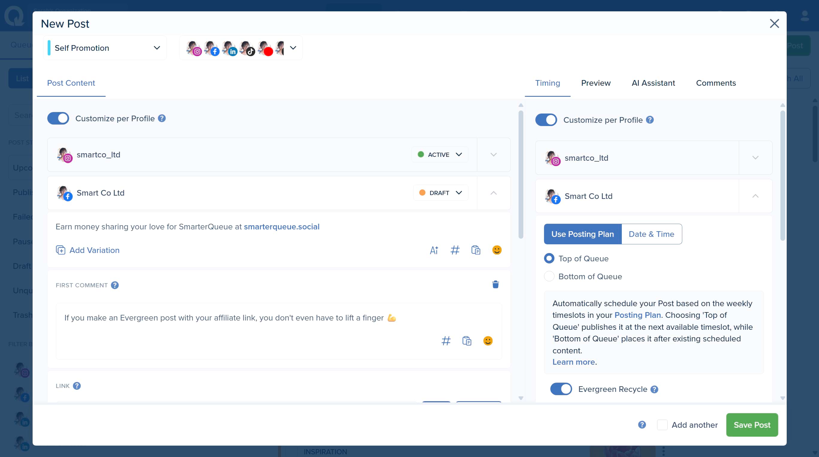 Creating a post is simpler and more flexible in the new SmarterQueue.
